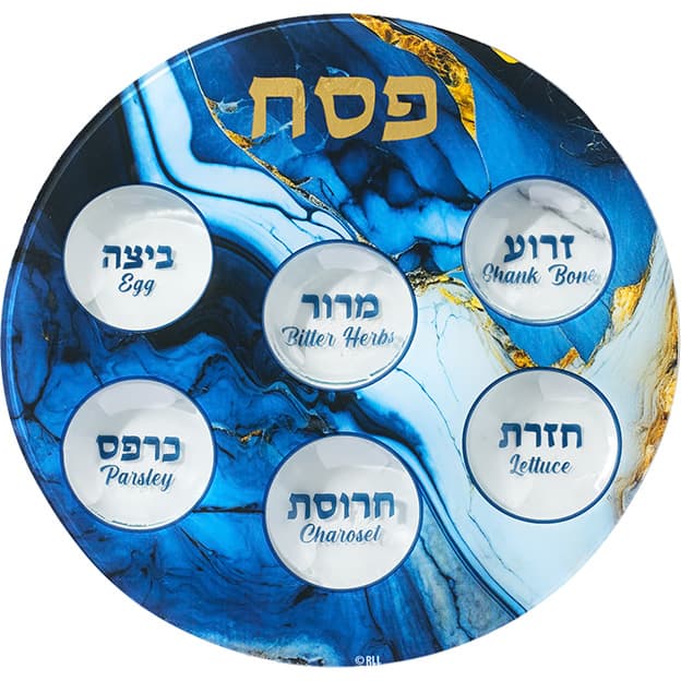 Perfectly wonderful marble design for this Glass Seder Plate. Beautiful shades of blue and gold in a striking piece of art. What a wonderful addition to your home for the Passover Season. 12"